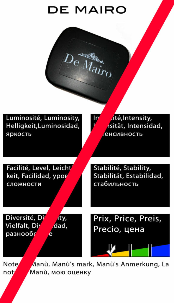 Je vous laisse juges. De mon côté, j’en ai assez; et si De Mairo souhaite enfin faire le nécessaire, la porte reste ouverte. Mais je ne peux pas décemment critiquer une couleur qui n’est, à priori, pas celle que j’aurais dû recevoir. Le test n’a donc jamais vraiment commencé.